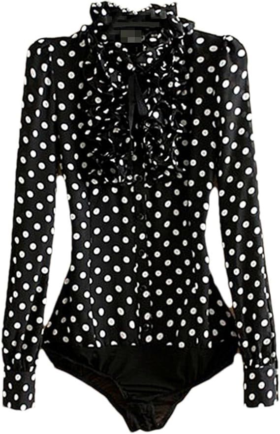 Blusa body de lunares negra de manga larga con volantes y abotonadura frontal