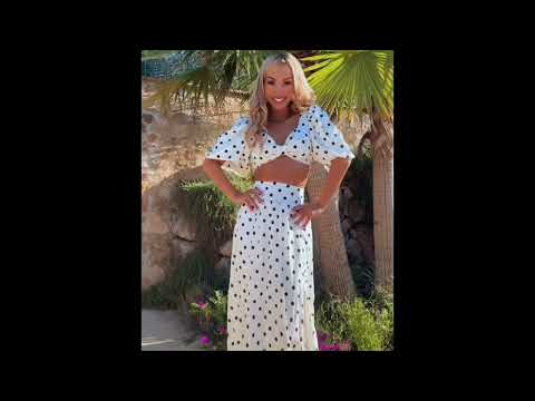 Conjunto de crop top y falda larga de lunares de tejido elástico