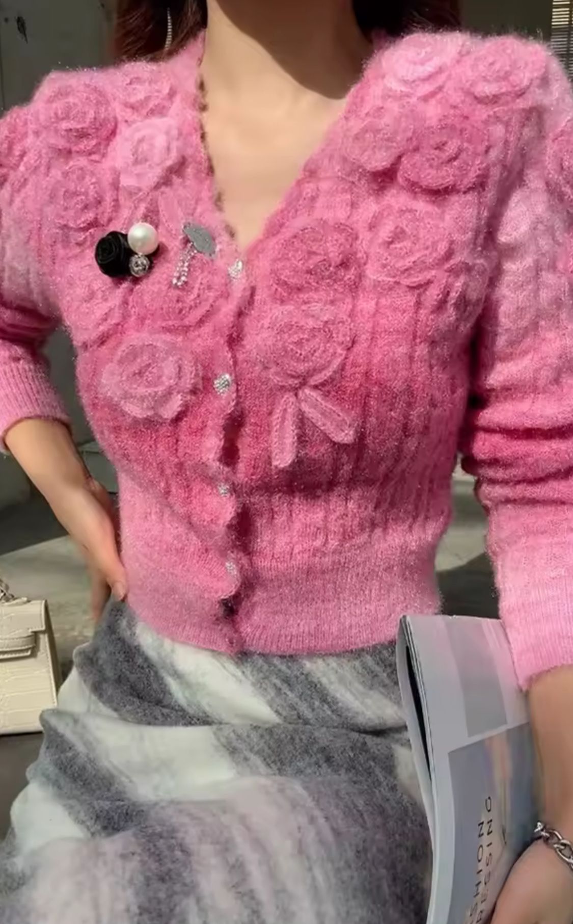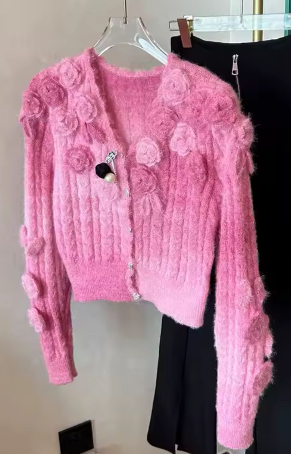 Conjunto de top y jersey chaqueta a juego de punto en color rosa