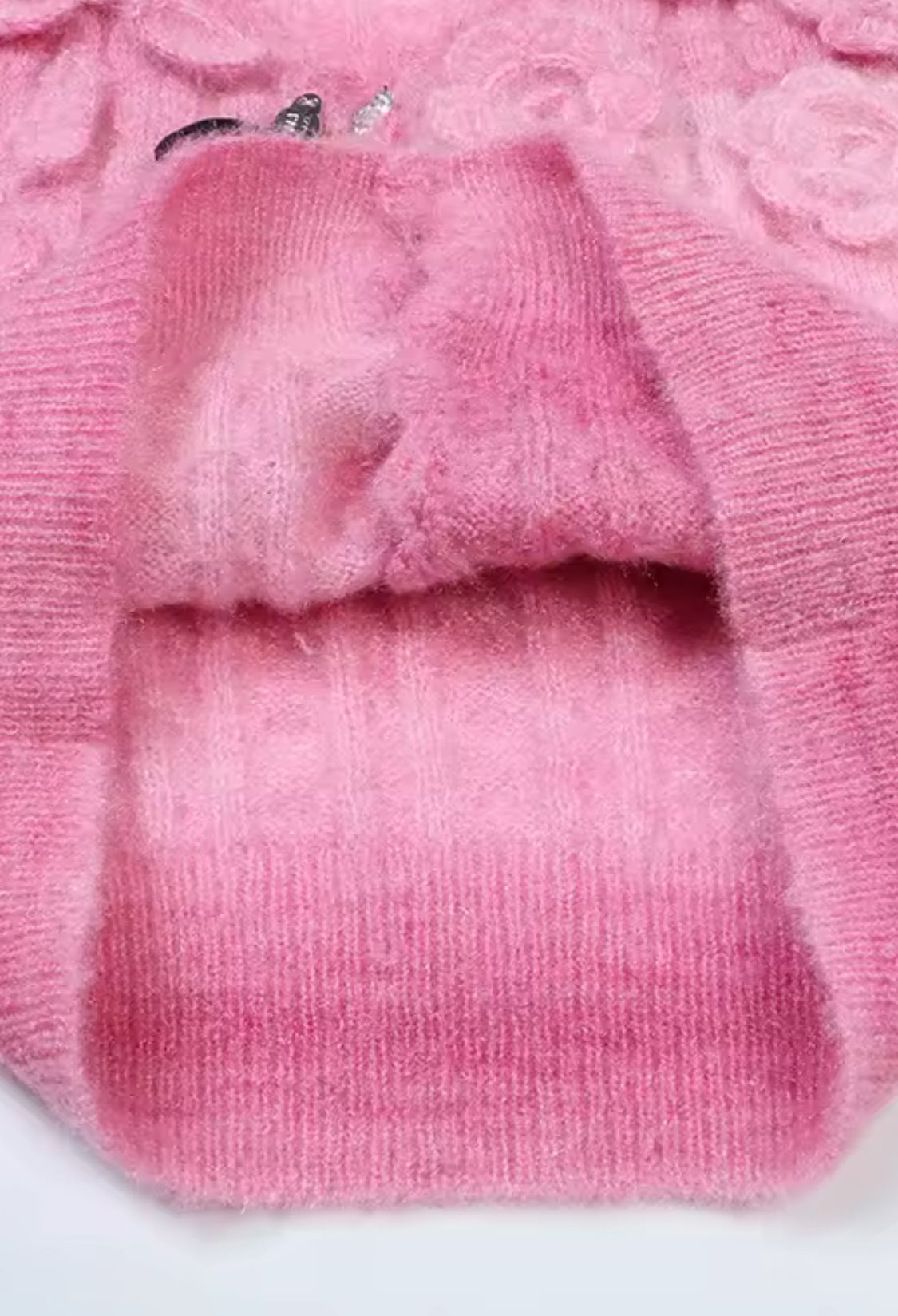 Precioso degradé en tonos rosas con flores en relieve 3D.