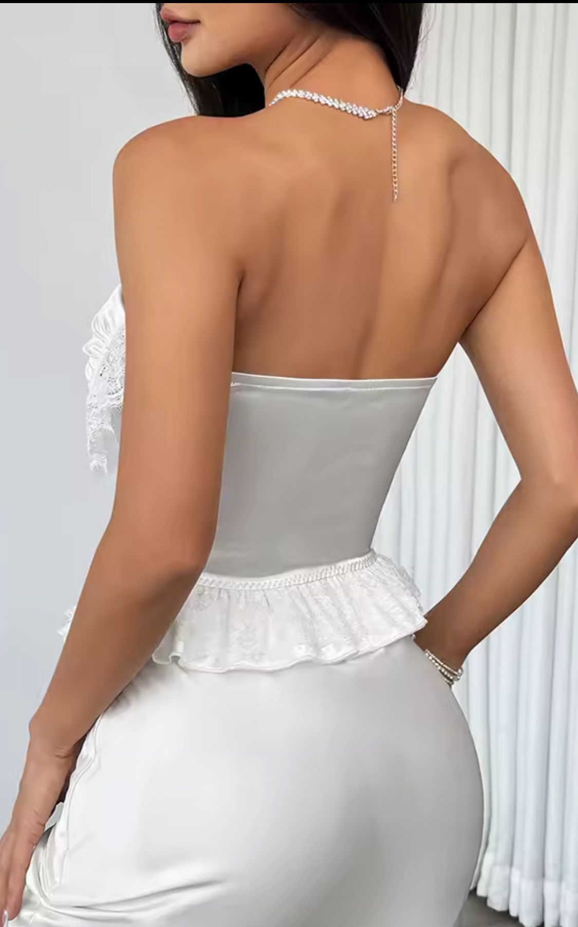 Corset bustier élastique sans bretelles en lycra stretch avec dentelle et strass décoratifs blancs