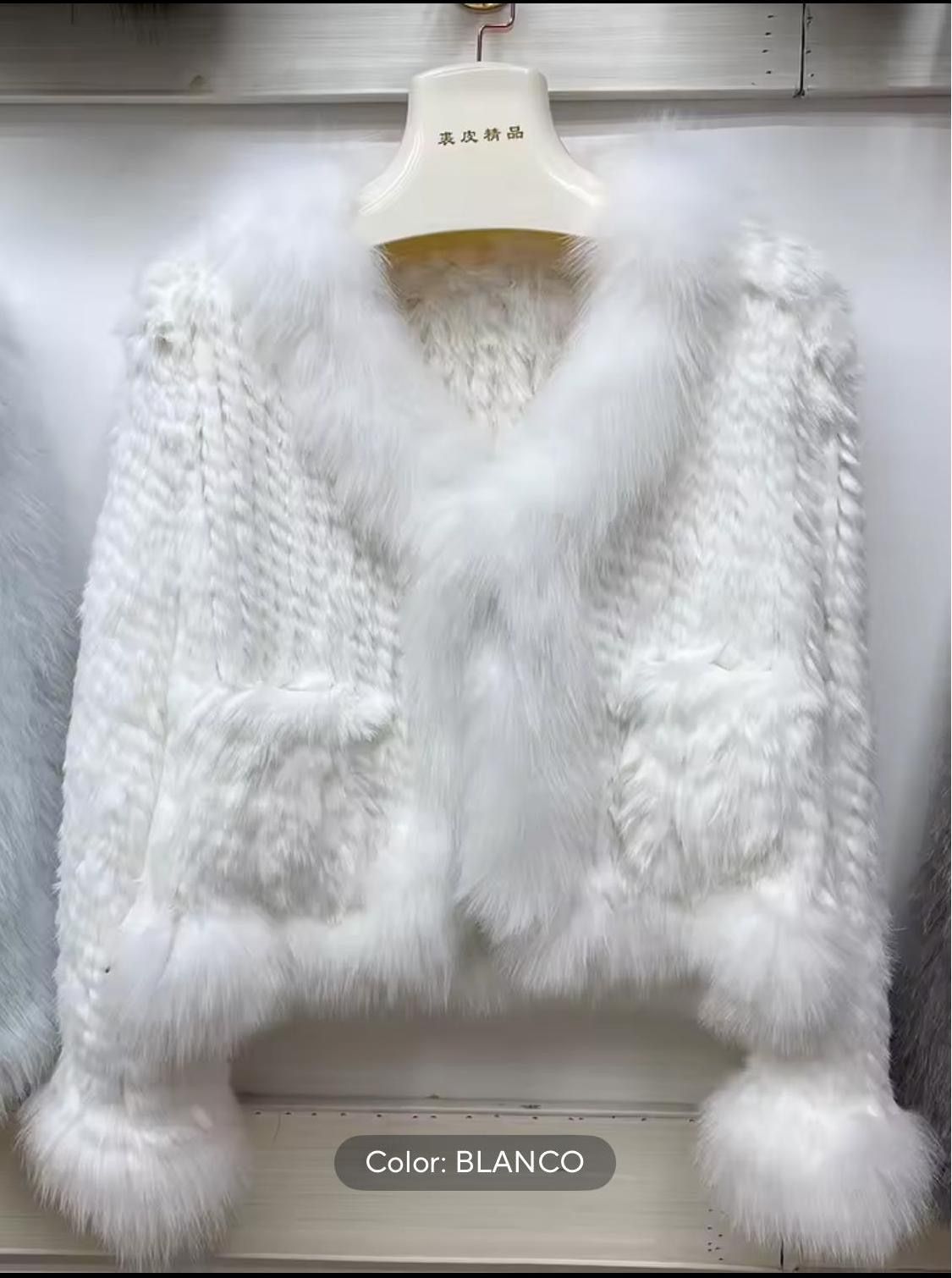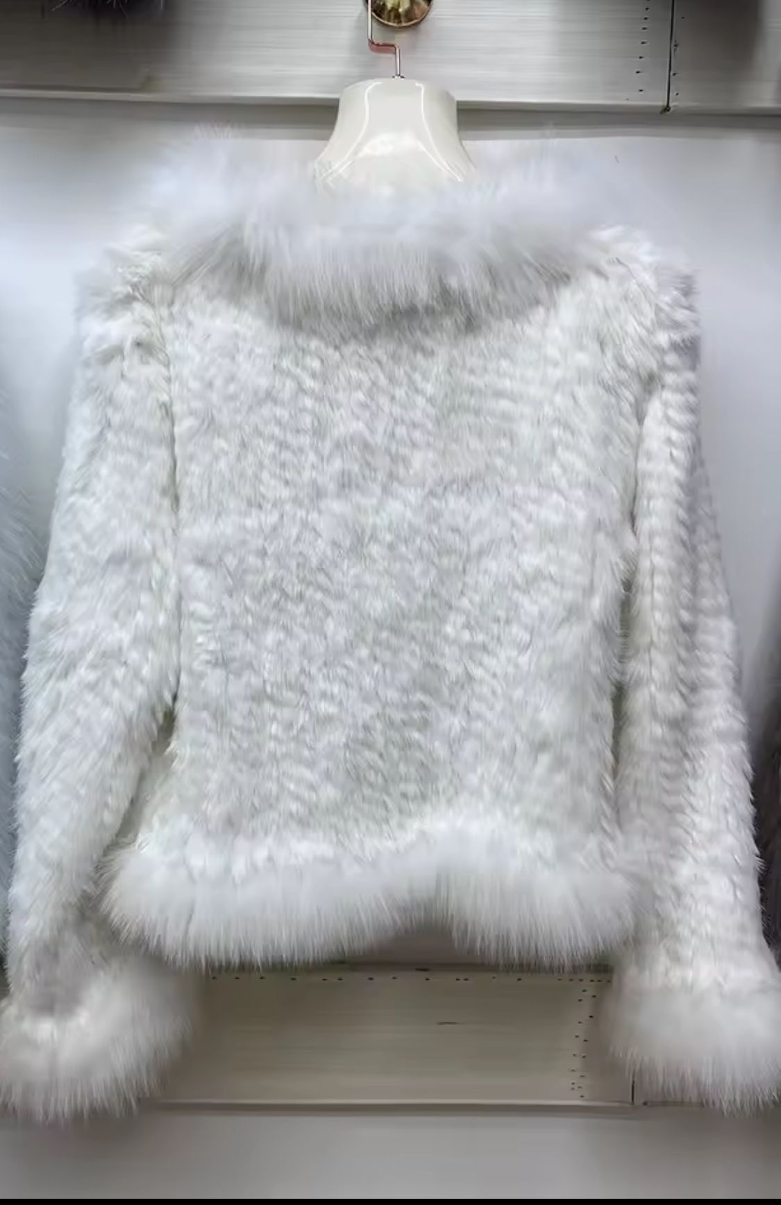 Un cardigan doux et moelleux en fourrure de lapin ultra-douce et chaude.