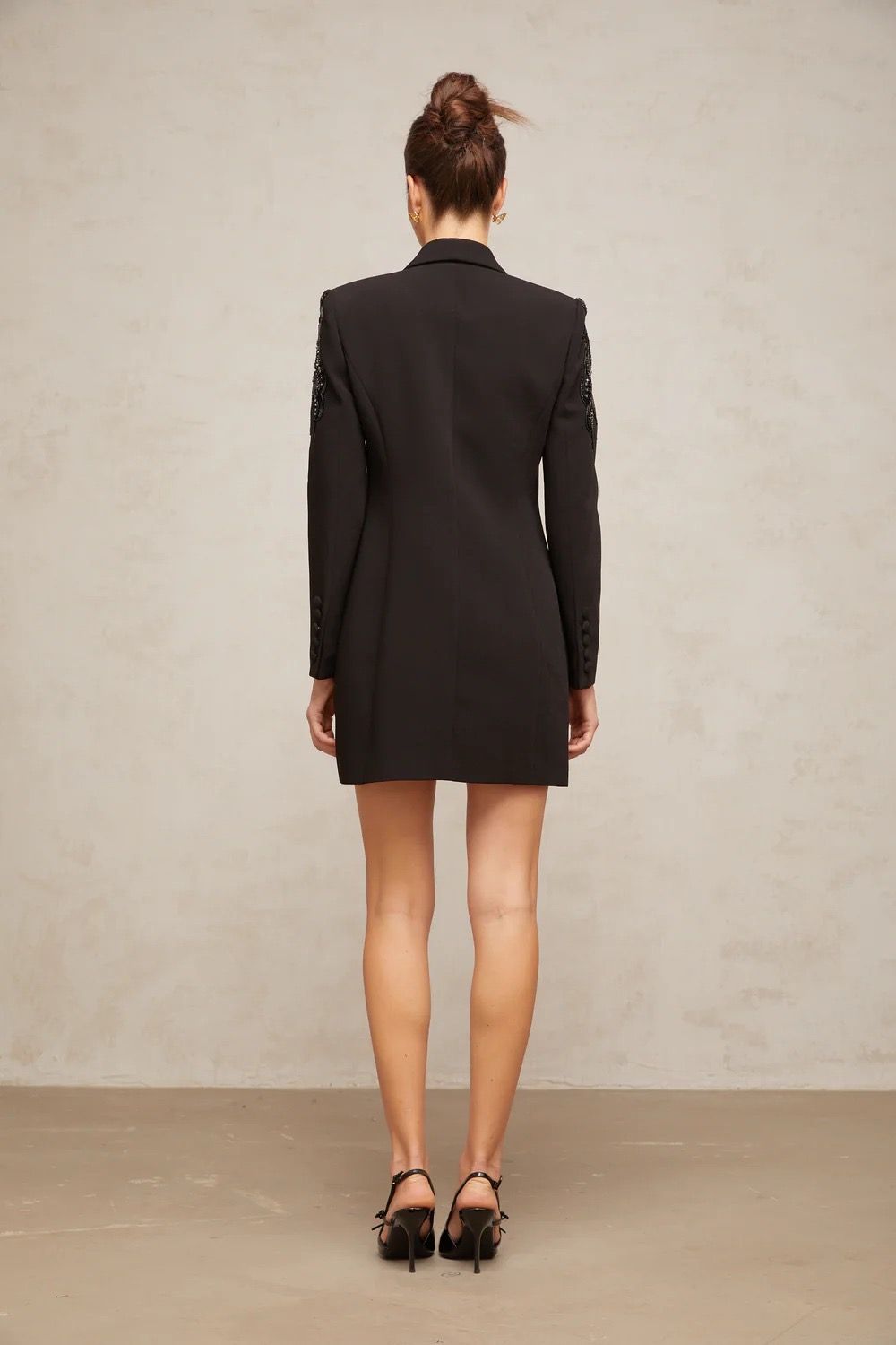 Vestido tipo blazer en color negro de pedrería