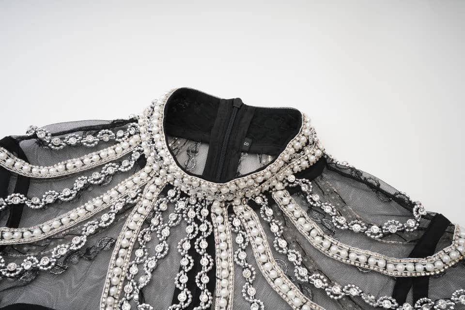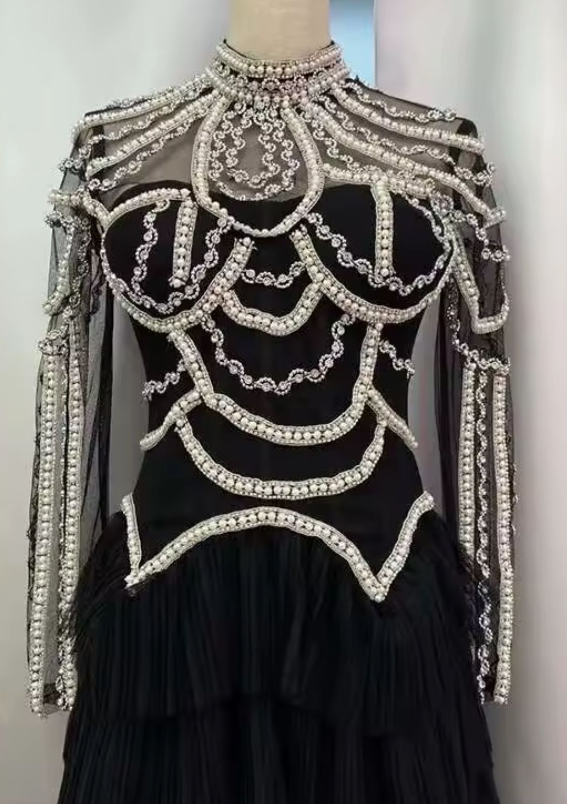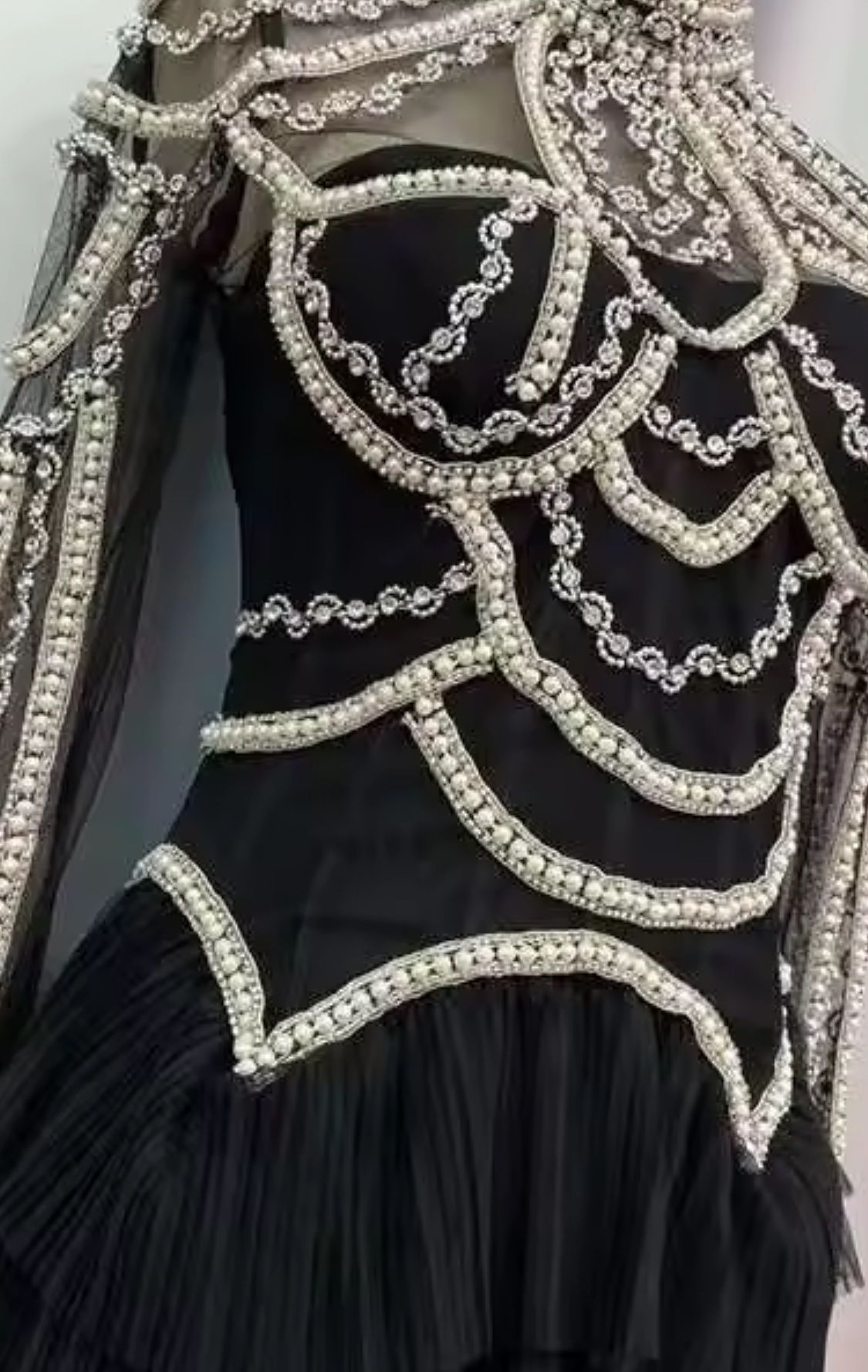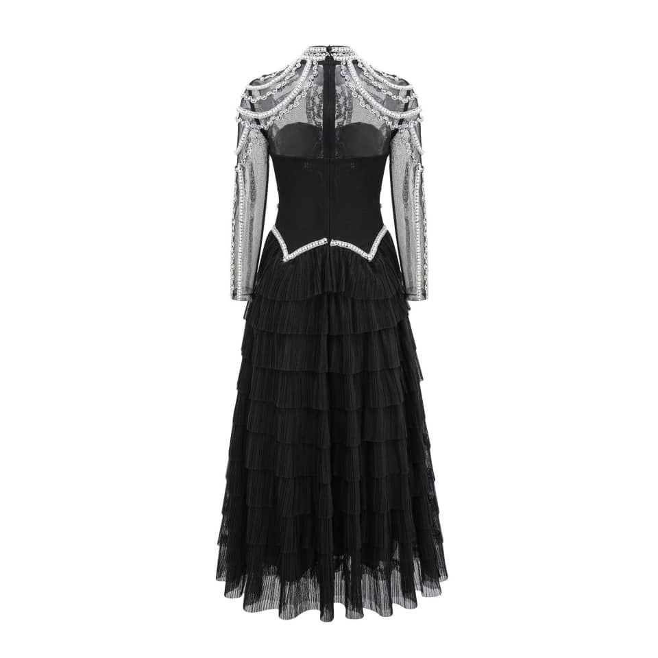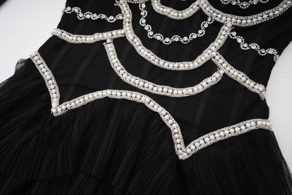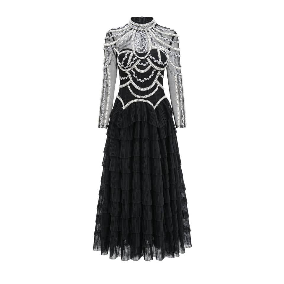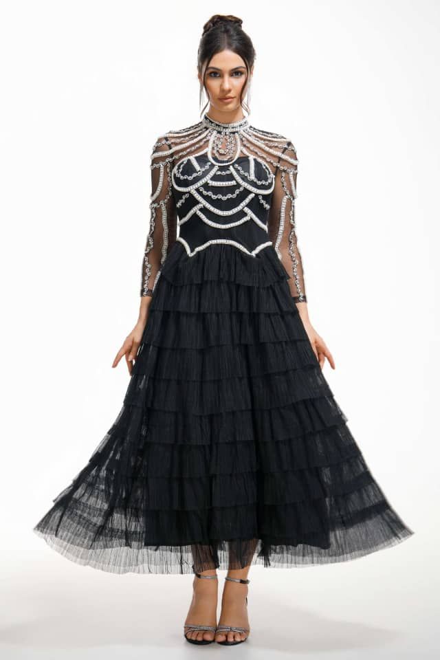 Un delicado vestido de tul con pedrería en un maravilloso negro.