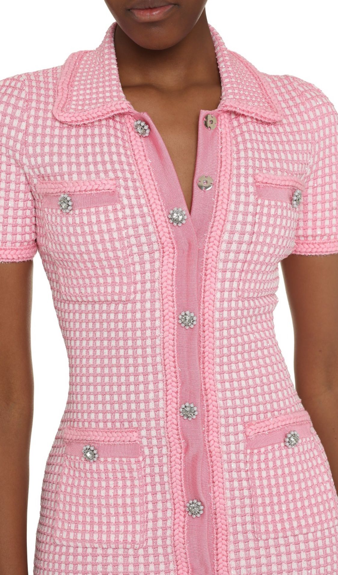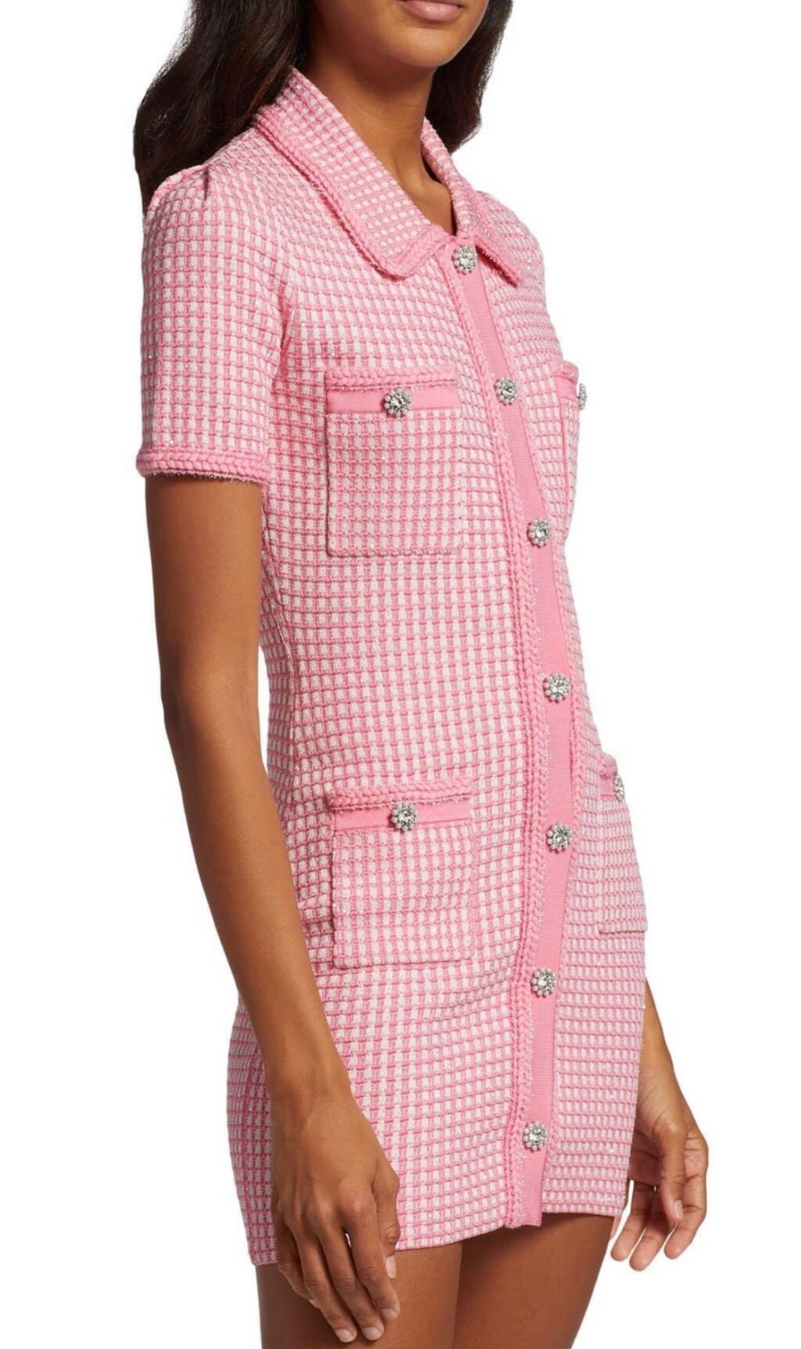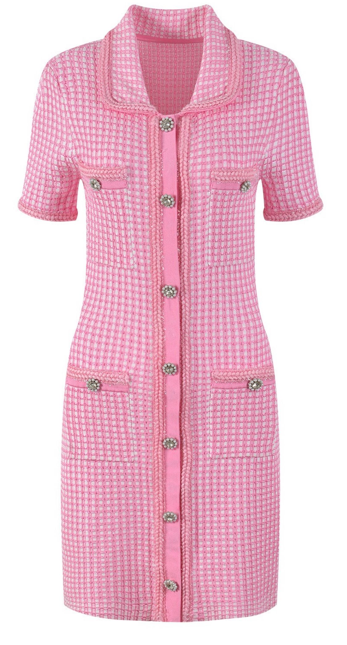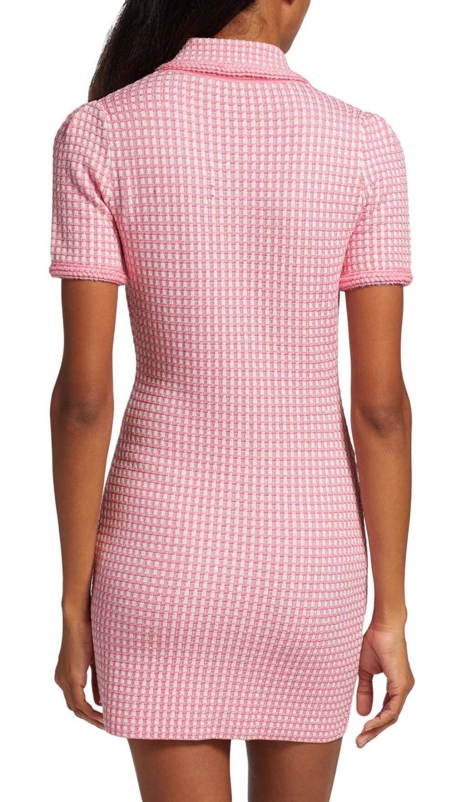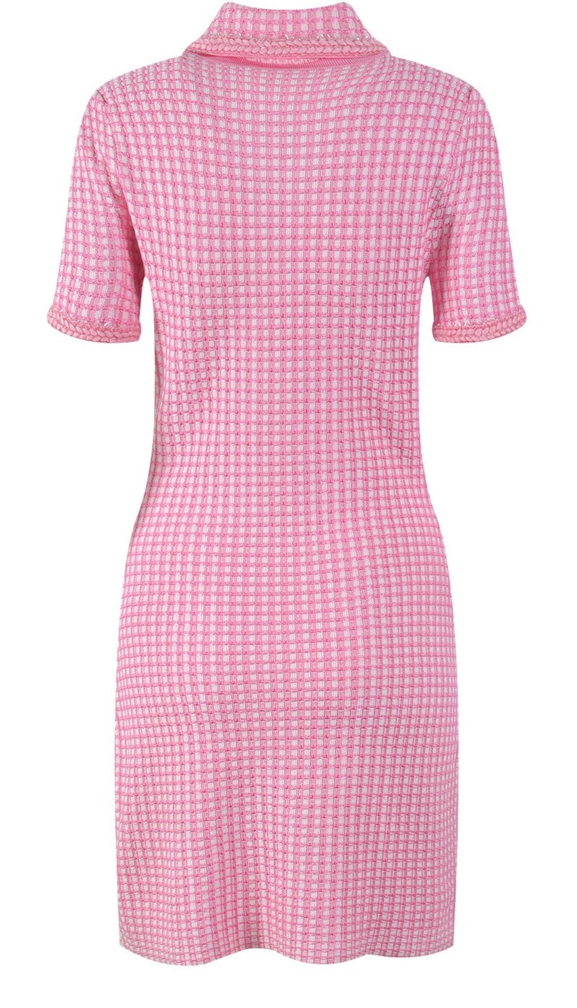 Vestido elástico de lana corto de manga corta en estampado de cuadros en color rosa bebé
