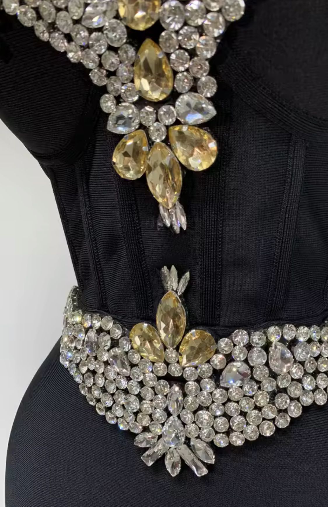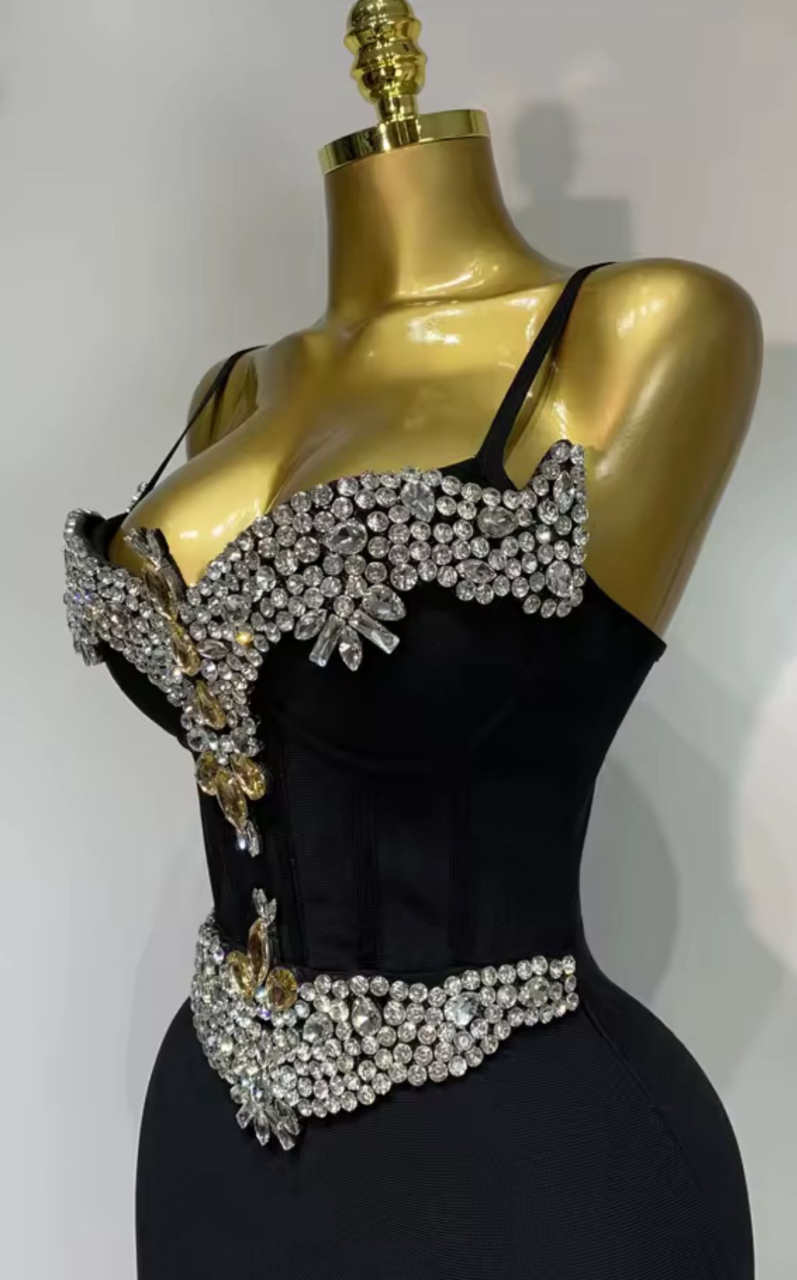 Se trata de un vestido elástico de tejido bandage de efecto reductor y moldeador de la silueta.