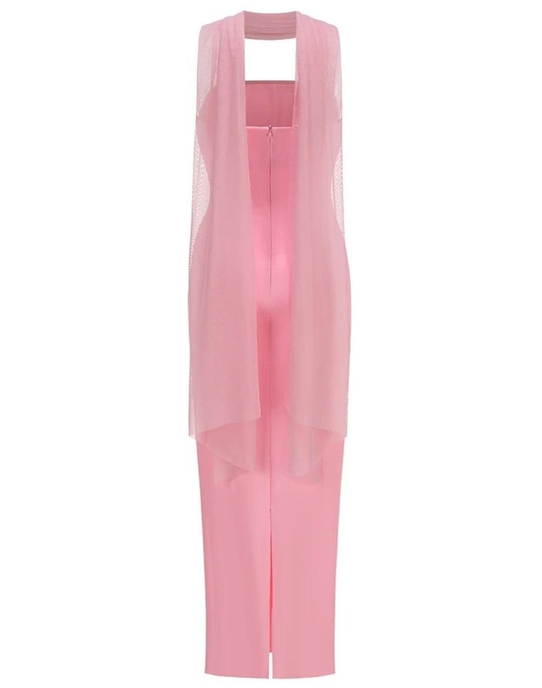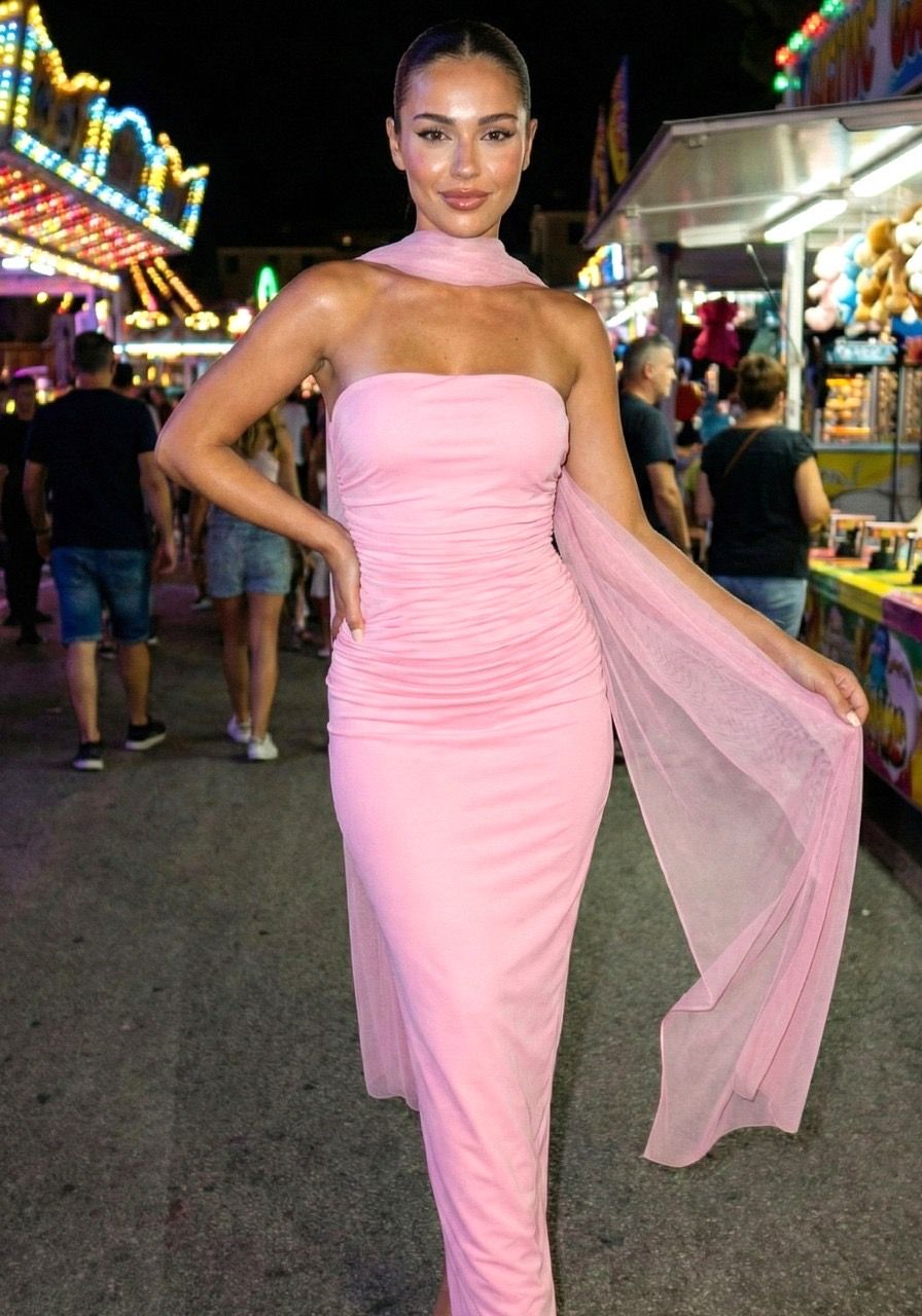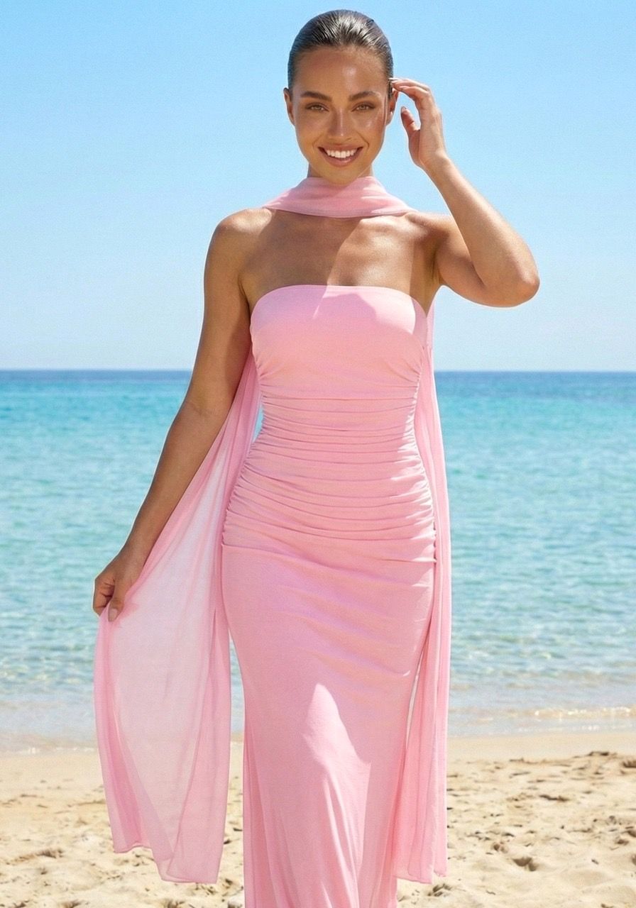 Vestido largo rosa bebé de licra elástico de escote palabra de honor